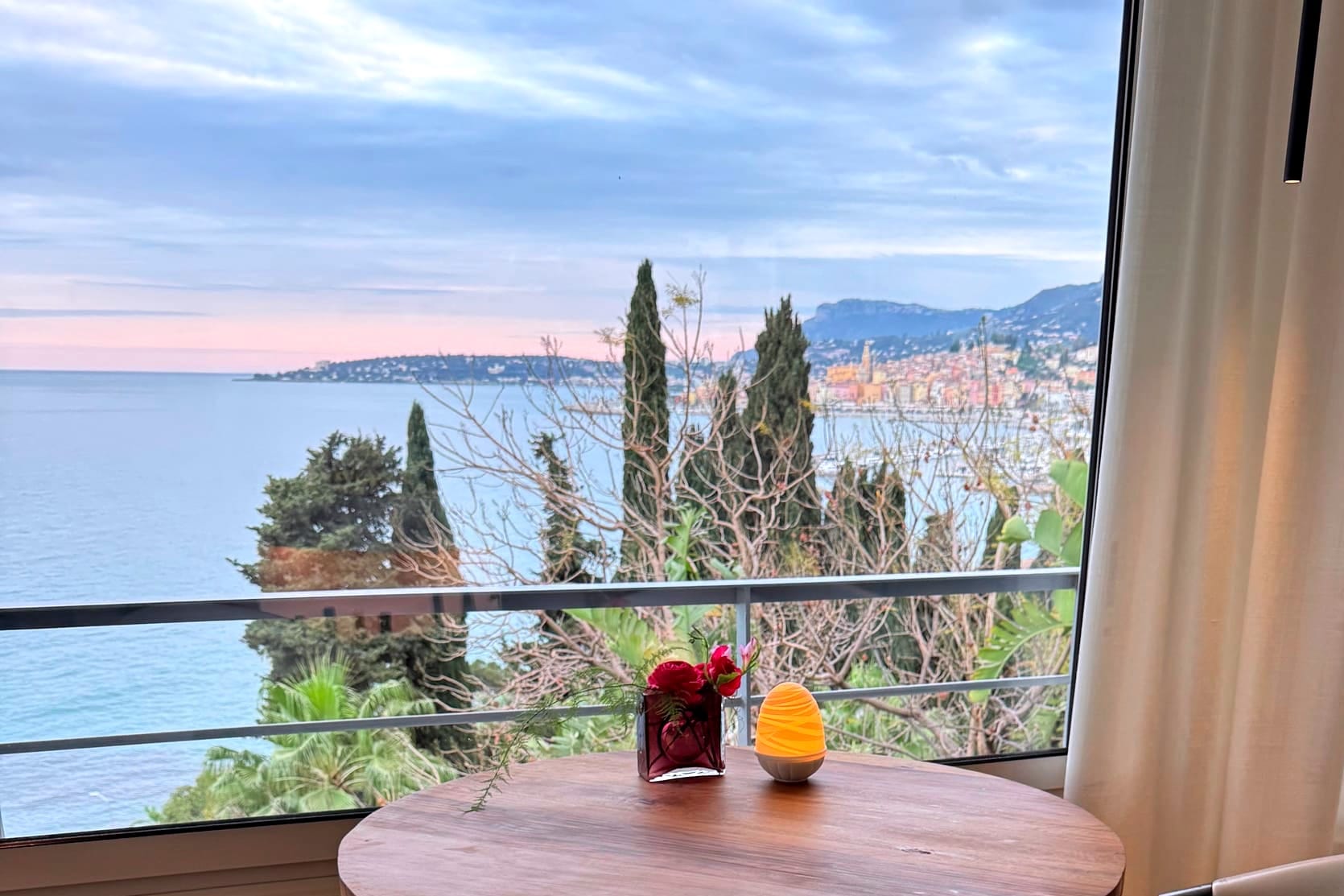We reached Menton while there was still light. This mattered. The restaurant’s name reveals itself only in daylight, when the view opens across the Mediterranean in a way that feels almost deliberate, as if framed rather than found.
